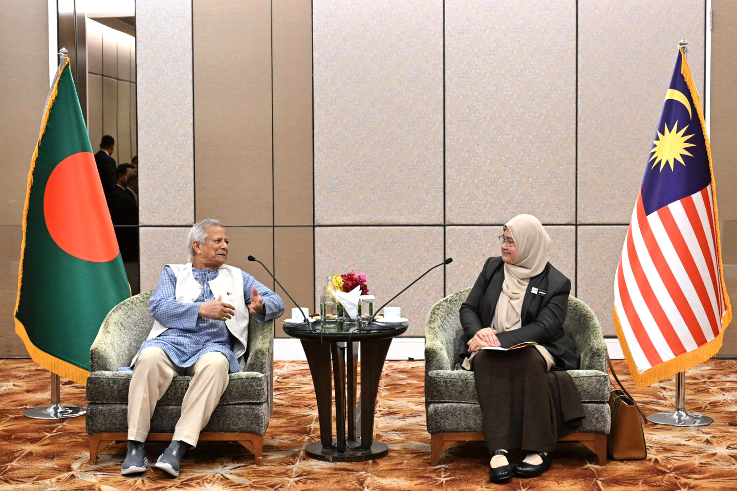 Professor Yunus spoke to Malaysian business leaders, calling for investment in Bangladesh's low-cost housing, ports, healthcare, education, renewable energy, and agro-processing industries. Top leaders such as Jeffrey Cheah (Sunway Group) and Syed Mokhtar Al Bukhary (Proton & MMC Corporation) showed keen interest in participating in the development of Bangladesh.